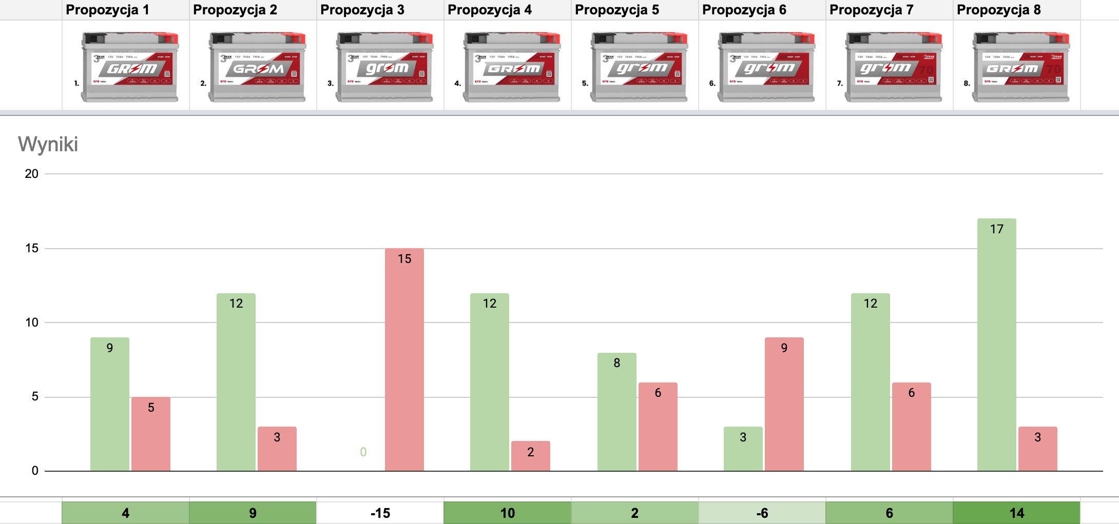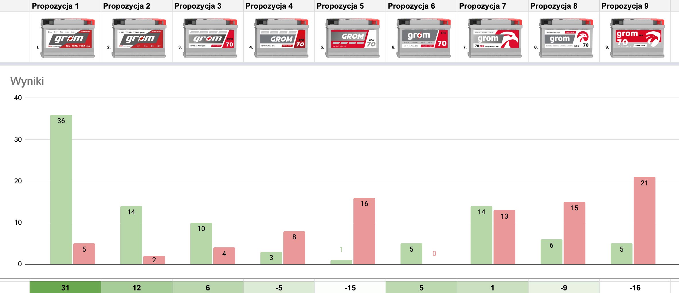 Dodatkowe badanie dotyczyło informacji (ikony + opisy) na etykietach. Badanie w formie otwartej odpowiedzi, mające na celu zawarcie na etykiecie informacji o cechach produktu o które najczęściej pytają klienci, bądź które najczęściej skłaniają do zakupu akumulatora.